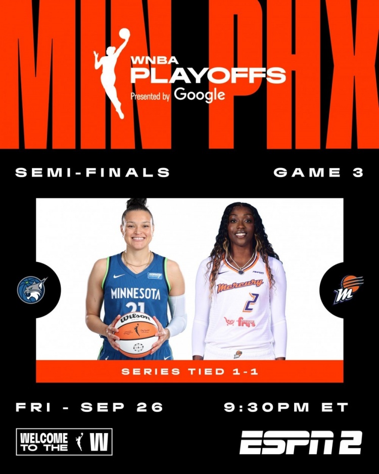 9月27日讯 WNBA季后赛半决赛G3,菲尼克斯水星回到主场迎战明尼苏达山猫。前两场比赛双方打成1-1。