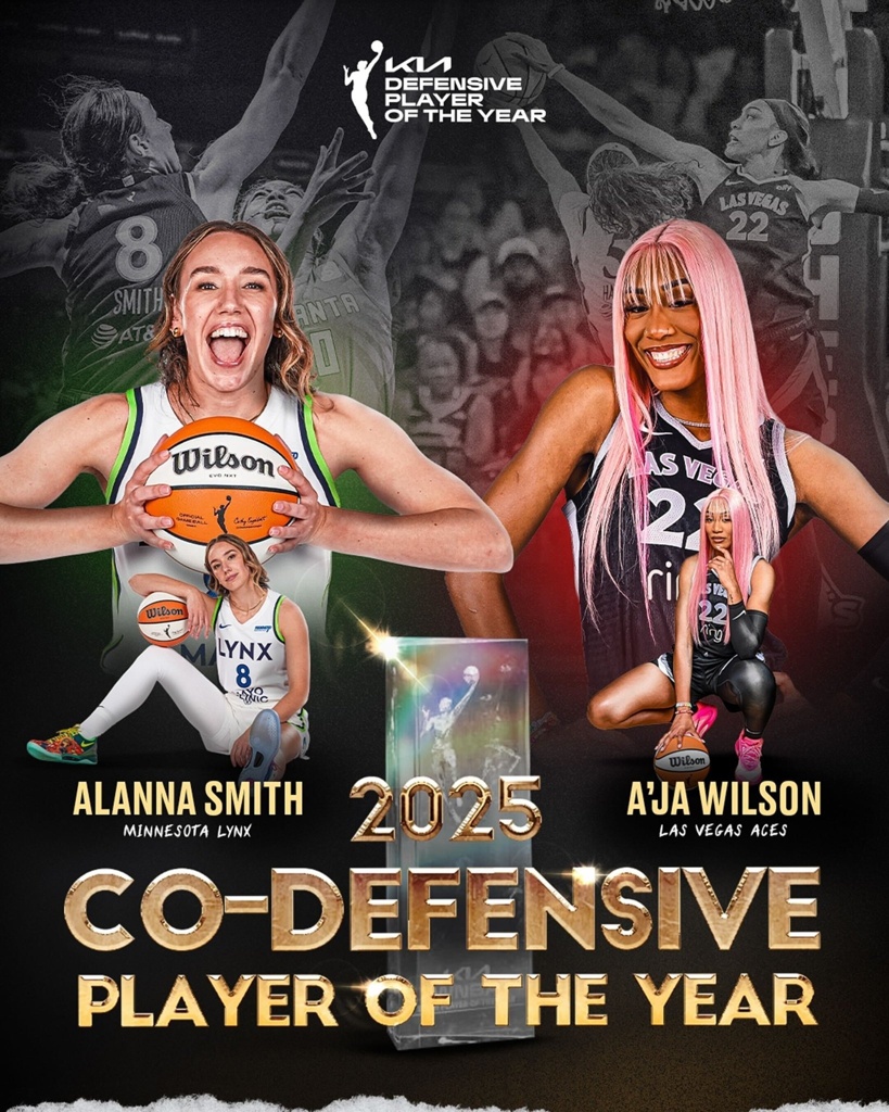 这是阿兰娜-史密斯首次斩获DPOY,而阿贾-威尔逊则是第三次获得该奖项。